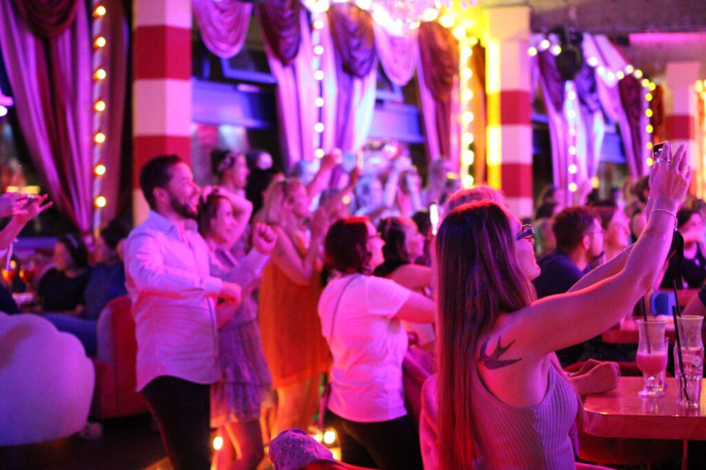 An unforgettable after-show party in the Knutschfleck cocktail bar right under the TV tower! After a breathtaking event; After a rousing show, the Knutschfleck cocktail bar is the perfect place to end the night in Berlin properly. Located right under the famous TV tower, our bar promises a party full of glamor and entertainment. A varied selection of exquisite cocktails awaits you in our stylish and cozy bar, which are freshly prepared for you by our experienced bartenders. Whether you choose a classic martini, a sparkling mojito or a trendy cocktail from our own creations – our drinks menu leaves nothing to be desired. Dance to rousing beats and celebrate in a relaxed atmosphere with your friends, colleagues or the show crew. Our DJ provides the perfect musical accompaniment so that you and your loved ones can rock the dance floor until the early hours. And if you get hungry, we have the right solution for that too: Our snack offer will spoil you with delicious appetizers and finger food that go perfectly with your cocktails. The Knutschfleck cocktail bar offers the ideal location for an unforgettable after-show party right under the television tower. Reserve in good time to ensure that you and your guests get an exclusive seat in our bar. Come by and experience a top-class after-show party in the Knutschfleck cocktail bar. We look forward to celebrating with you and giving you a night full of fun and unforgettable moments! info@knutschfleckberlin.de
