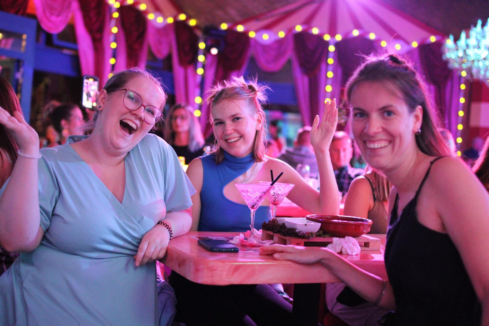 Mädels aufgepasst! Es ist Zeit, die High Heels anzuziehen, das perfekte Kleid auszuwählen und sich auf einen unvergesslichen Mädelsabend im Knutschfleck Berlin vorzubereiten! Im Herzen der pulsierenden Stadt erwartet euch eine glamouröse Atmosphäre, die perfekt für eine ausgelassene Zeit mit euren besten Freundinnen ist. Taucht ein in die faszinierende Welt der 20er Jahre und erlebt eine Nacht voller Spaß, Musik und Tanz. Lasst euch von talentierten Künstlern mit ihren mitreißenden Live-Shows verzaubern. Von mitreißenden Gesangseinlagen bis hin zu atemberaubenden Tanzperformances – im Knutschfleck Berlin ist für jeden Geschmack etwas dabei. Feiert und singt lautstark mit, wenn die Bühne zum Leben erwacht und euch in eine andere Zeit entführt. Natürlich dürfen bei einem Mädelsabend die leckeren Drinks nicht fehlen! An der stilvollen Bar könnt ihr aus einer Vielzahl von erfrischenden Cocktails und köstlichen Getränken wählen. Stoßt auf eure Freundschaft an und genießt die unvergesslichen Momente, die ihr gemeinsam erleben werdet. Das Knutschfleck Berlin bietet euch den perfekten Rahmen für einen unvergesslichen Mädelsabend. Tanzt, lacht und singt, während ihr euch von der mitreißenden Atmosphäre mitreißen lasst. Kreiert wundervolle Erinnerungen, die euch noch lange begleiten werden. Verbringt einen unvergesslichen Abend voller Glamour und Nostalgie im Knutschfleck Berlin. Reserviert noch heute euren Tisch und sichert euch einen Platz in diesem einzigartigen Erlebnis. Mädelsabende im Knutschfleck Berlin – eine Party, die ihr nicht verpassen dürft! info@knutschfleckberlin.de