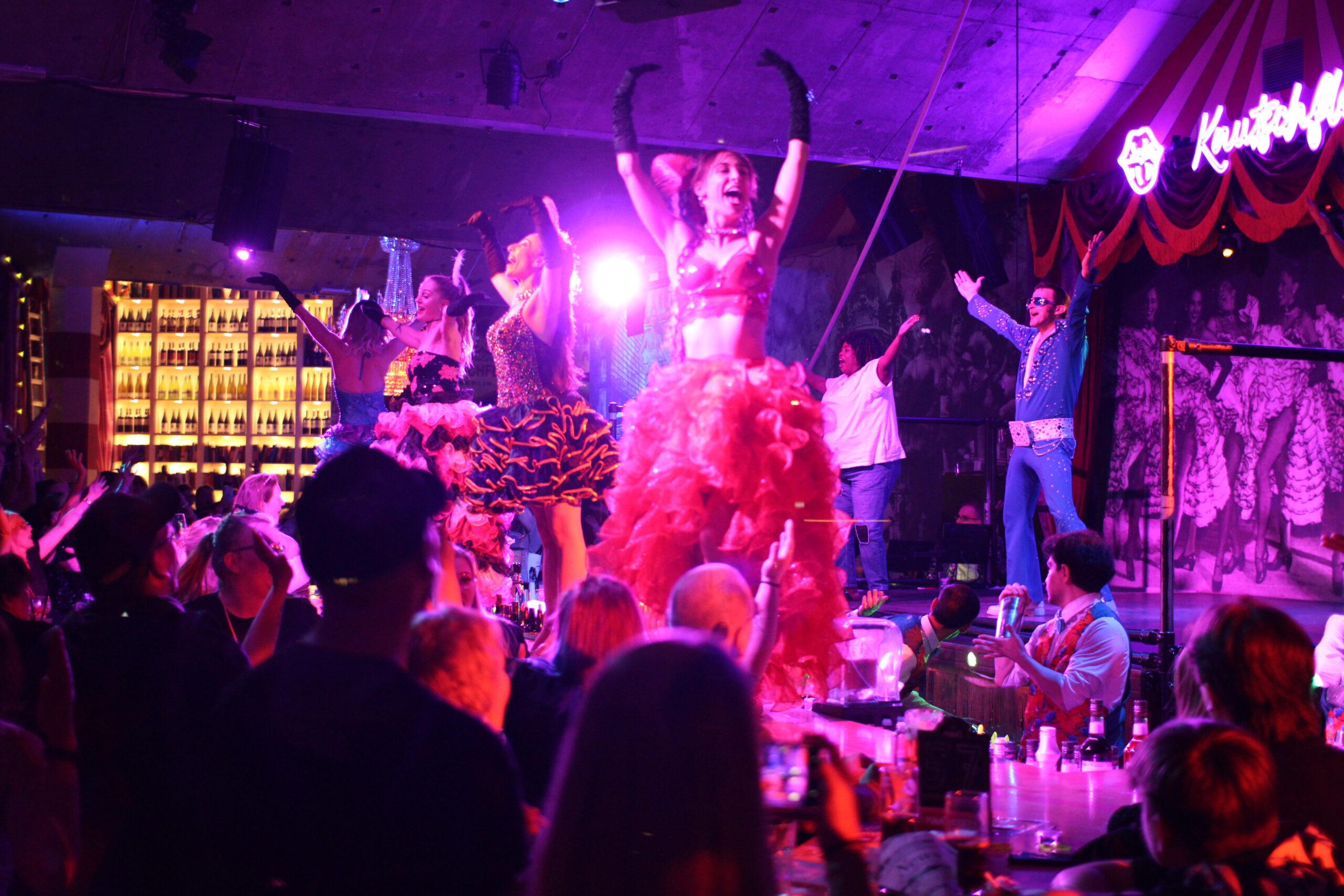 Event Restaurant Berlin Live Musik. Knutschfleck Cocktailbar Berlin am Alexanderplatz! Unser exklusives Berliner Abendprogramm mit Varieté und Aftershow-Party bietet Ihnen am Freitag und Samstag jede Menge Unterhaltung und die Möglichkeit, Ihren letzten Abend in Freiheit zu einem unvergesslichen und außergewöhnlichen Erlebnis zu machen. Es erwarten Sie internationale Künstler, von Saxophonisten über Luftakrobaten bis hin zu Berliner Showgirls, die Ihnen mit verführerischen Burlesque-, Moulin Rouge-, Can Can- und Rock n Roll-Tanzeinlagen einheizen. Anschließend heizt Ihnen unser DJ mit den besten Hits aller Genres auf der Tanzfläche ein und eröffnet die Knutschfleck-Clubnacht. Hier herrscht die beste Atmosphäre im Berliner Nachtleben, die Sie sich nicht entgehen lassen sollten. in Berlin und genau das Richtige für Ihren Junggesellenabschied oder andere Anlässe wie Geburtstag, Abschiedsparty, Verlobung, Jubiläum, Hochzeitstag, Mädelsabend oder Herrentreffen. Schnappen Sie sich Ihre Jungs oder Mädels und spielen Sie gemeinsam Ihre Lieblingslieder auf der Bühne. Die Knutschfleck Bar ist übrigens auch die beste Cocktailbar Berlins und die beste Adresse Berlins für leckeres Essen und tolle Feiern. Über 150 leckere Cocktails warten darauf, Ihnen den Abend zu versüßen. Auch Longdrinks, Fassbier und Wein stehen auf der Speisekarte. Energie tanken Sie mit unserer herzhaften, deutschen Küche, die für Sie klassische und köstliche Gerichte zaubert. Um den Abend noch persönlicher und exklusiver zu gestalten, bieten wir Ihnen auch JGA-Pakete an. Wie wäre es mit einer Limousinenfahrt durch Berlin inklusive Getränken? Und für die Wilden unter euch gibt es in unseren zahlreichen Eventpaket.http://www.knutschfleckberlin.de Kontakt:info@knutschfleckberlin.de