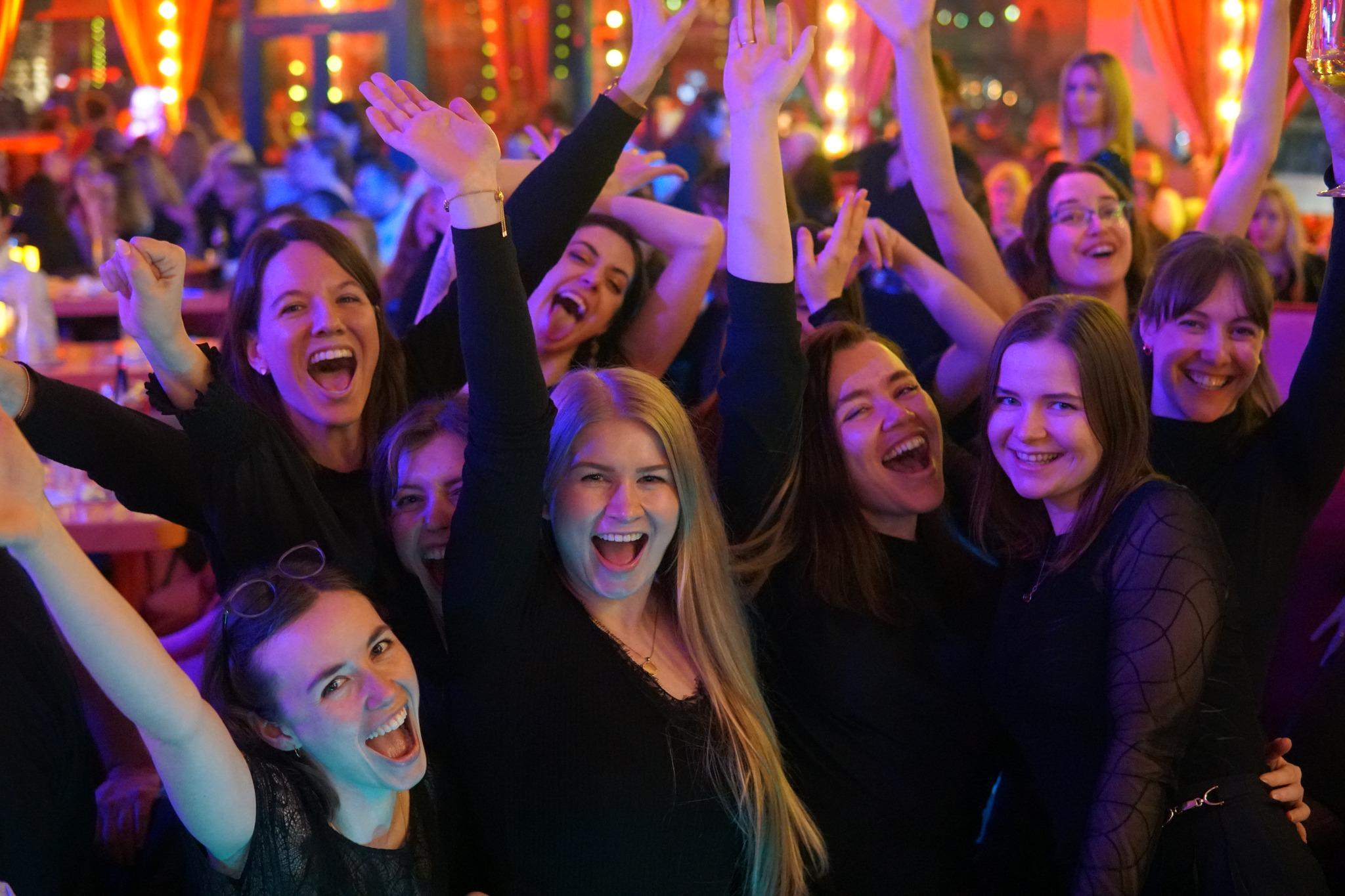Day dazzles, night nukes! Girls night out and brunch in Knutschfleck Berlin detonates midnight club carnage DJs detonate Rock’n’Roll, swing, pop, hip-hop till dawn (ticket totality). Showgirls spearhead bride conga conquests; Pink Cadillac photo pillage. Sweat-soaked, story-stacked send-off supreme!