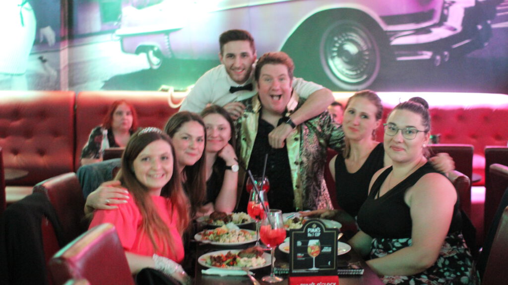Wir feiern mit euch im Knutschfleck Berlin jede Woche Hochzeitstage, Betriebsfeiern, Junggesellinnenabschiede, Geburtstage und viel weitere schöne Events. Schon während unserer Shows am Wochenende mit Burlesque, Moulin Rouge, Salsa, Chicago, Can Can und Rock n Roll, Animation, Saxophon, Schlangenfrau, Livegesang, Tanz und atemberaubender Artistik. Es wird getanzt, gefeiert und gelacht als wenn es keinen Morgen gibt. Der Knutschfleck Berlin gehört mit seinem Entertainment, Variete und Abendprogramm zu den besten Adressen für Eventagenturen, Locationscouts, Berliner, Gruppenreisen, Reisegruppen, Berlinbesucher, Touristen, Reise- und Busunternehmen. Ihr könnt als Gast im Knutschfleck Berlin die einzigartigen Shows genießen, mitmachen, tanzen und ausgelassen Party feiern. Wer also eine Location, Gaststätte, Bar, Eventlocation, Restaurant, Veranstaltungsstätte oder Cocktailbar für eine Veranstaltung, Event, Geburtstag, Junggesellinnenabschied, Weihnachtsfeier, Abschiedsparty, Verlobung, Hochzeitstag, Jubiläum, Betriebsfeier, Teamevent, Firmenfeier, Teambuilding oder eine andere Feier, Event, Präsentation oder Party sucht, der ist im Knutschfleck Berlin genau richtig. Ja auch um neue Menschen kennen zu lernen ist der Knutschfleck die empfehlenswerteste Adresse in Berlin. Schaut einfach mal auf unsere Homepage www.Knutschfleckberlin.de Und denkt daran zu reservieren.